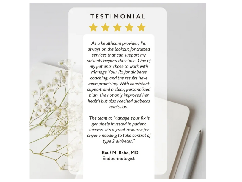 Living with diabetes can be challenging, but you don’t have to navigate it alone. At Manage Your Rx, we provide personalized, one-on-one virtual coaching to help you manage your diabetes with confidence and clarity.
